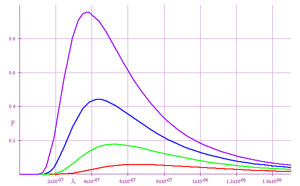 0°K -> 900°K -> 2000°K -> 5000°K -> 20000°K -> ... Wien's Displacement Law: