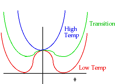 | In particular, Higgs field (gives rise to mass of particles) becomes spontaneously broken since minimum has a random phase |