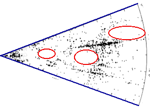Coma cluster is close together in space, but velocity dispersion spreads it out in z.