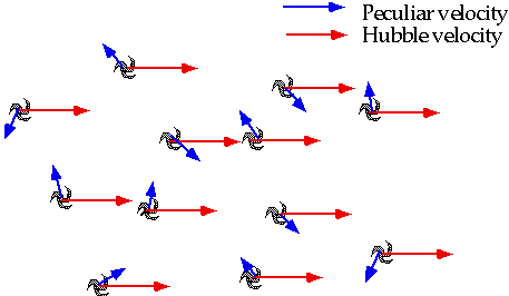 For a single galaxy, can only measure vel. in radial direction, so radial component of peculiar motion gets added on.t