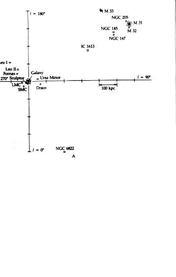 Closest component may be a dwarf galaxy "only" 20 kpc from us, in plane of Milky Way in Pegasus. Maffei I and II, seen as faint galaxies in I.R., but probably giant elliptical and spiral, probably at distance of 1-2 Mpc, and form their own group