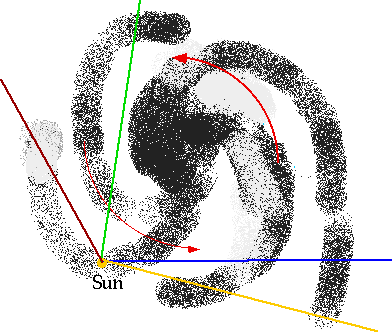 Note: Dust clouds lie along galactic equator: similar effects seen in other galaxies general picture is that sun lies on a spiral arm of galaxy, ∼12kpc from centre
