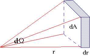 Observer looks at an region of sky of angular area (i.e. solid angle) dΩ (area dA in the sky at a distance r)