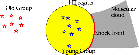 | Hot, young stars ionise gas ⇒ H11 region. Further out, gas is heated but not ionised Eagle nebula (M16) |