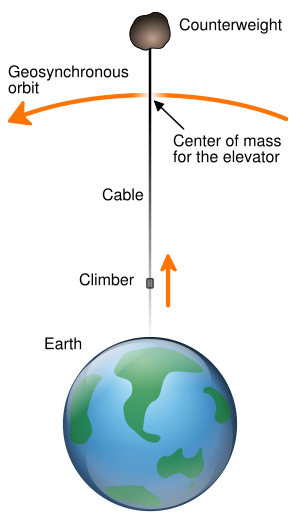 A neat idea but needs materials with huge tensile strength and low density, and we still have energyy problems (doesn't matter how we get something into orbit, energy is a constant). Need to be at geostationary orbit ~ 36000 km